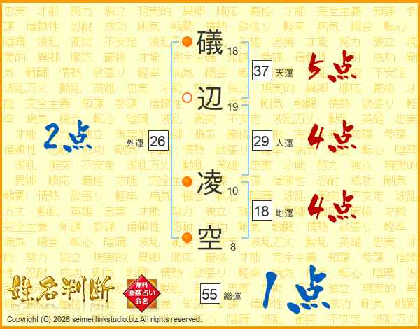 礒辺凌空さんの天運は37画の5点!