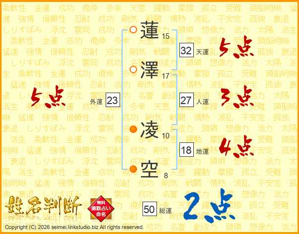 蓮澤凌空さんの外運は23画の5点!