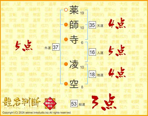 薬師寺凌空さんの外運は37画の5点!