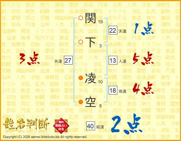 関下凌空さんの総運は40画の2点!