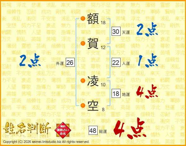 額賀凌空さんの総運は48画の4点!