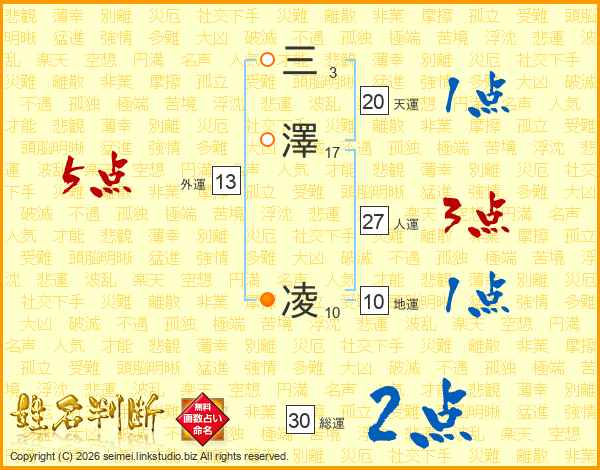 三澤凌さんの総運は30画の2点!