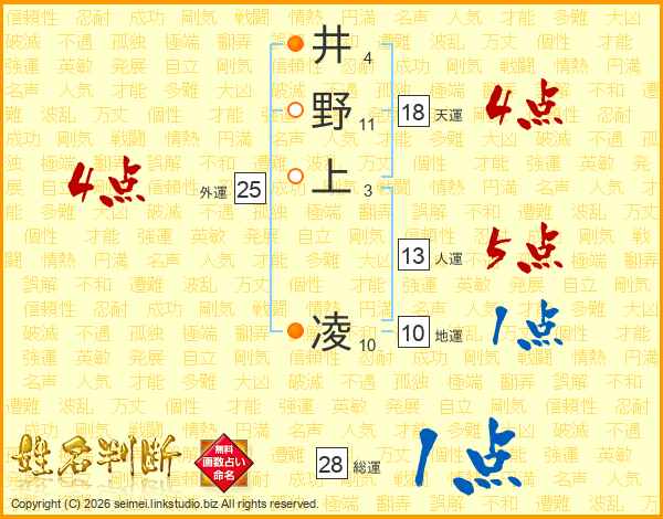 井野上凌さんの天運は18画の4点!