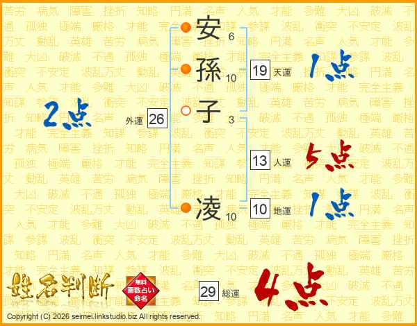 安孫子凌さんの総運は29画の4点!