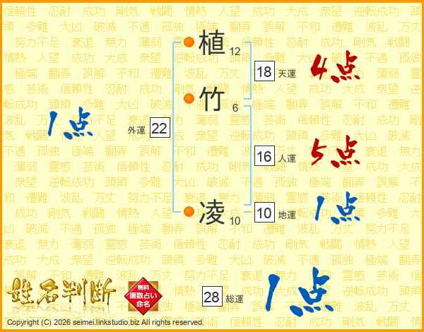 植竹凌さんの天運は18画の4点!