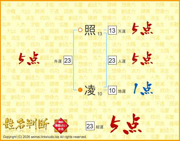 照凌さんの人運は23画の5点!