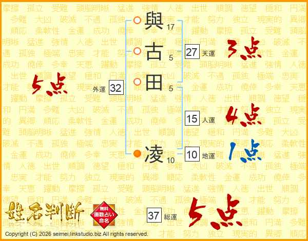 與古田凌さんの総運は37画の5点!