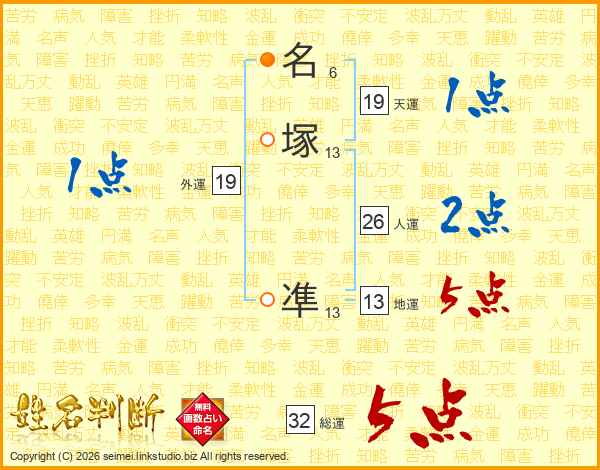 名塚凖さんの総運は32画の5点!