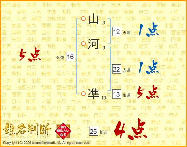 山河凖さんの総運は25画の4点!