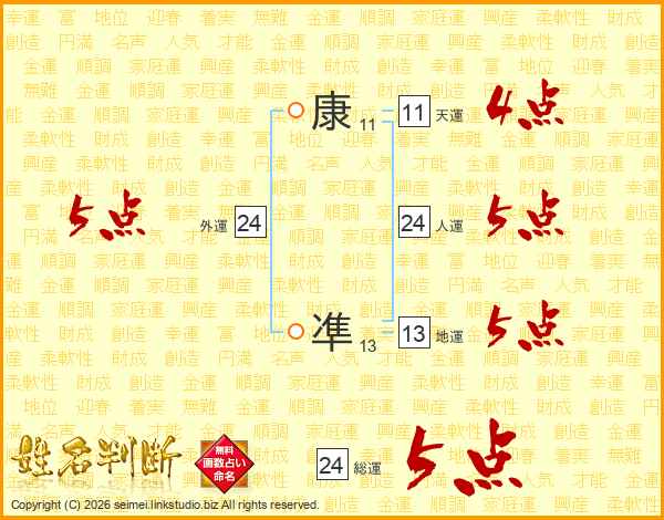康凖さんの総運は24画の5点!
