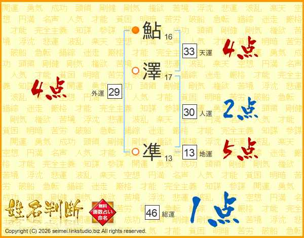 鮎澤凖さんの総運は46画の1点!