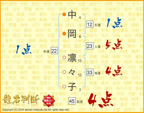 中岡凛々子さんの総運は45画の4点!