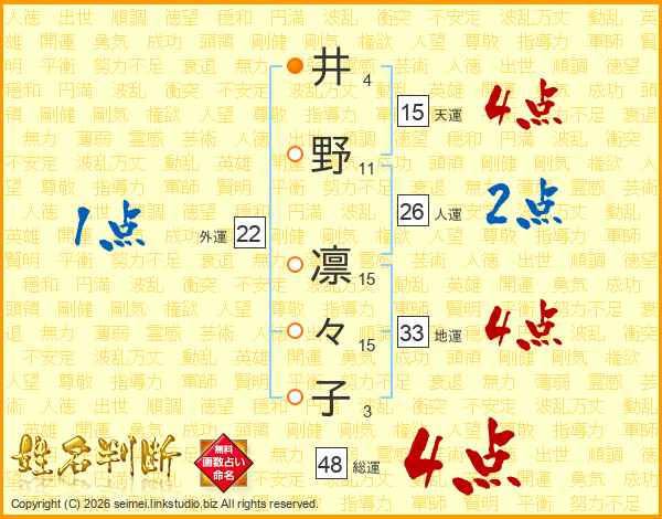 井野凛々子さんの総運は48画の4点!