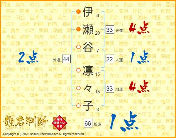 伊瀬谷凛々子さんの総運は66画の1点!
