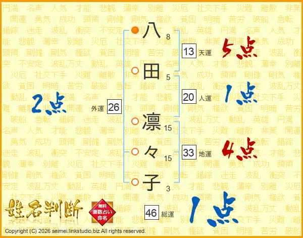 八田凛々子さんの天運は13画の5点!