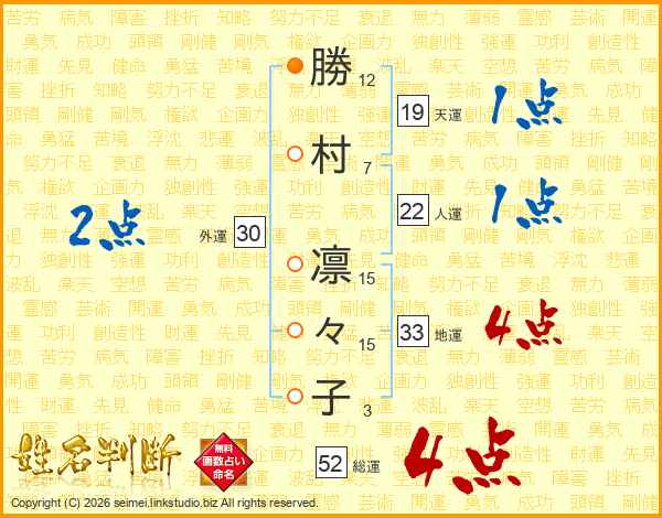 勝村凛々子さんの総運は52画の4点!