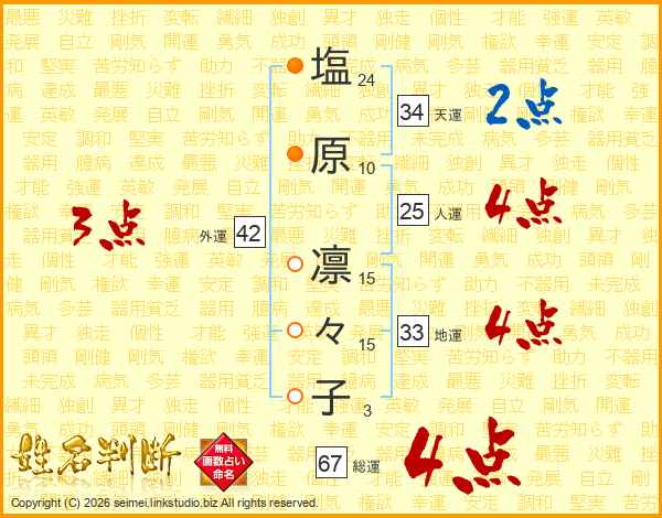 塩(24画)原(10画) 凛(15画)々(15画)子(3画)