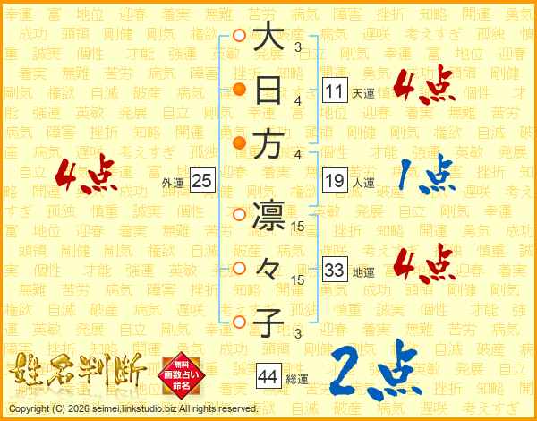 大日方凛々子さんの総運は44画の2点!