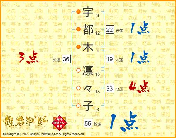 宇都木凛々子さんの総運は55画の1点!