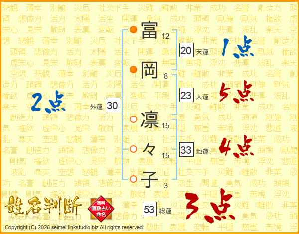 富岡凛々子さんの総運は53画の3点!