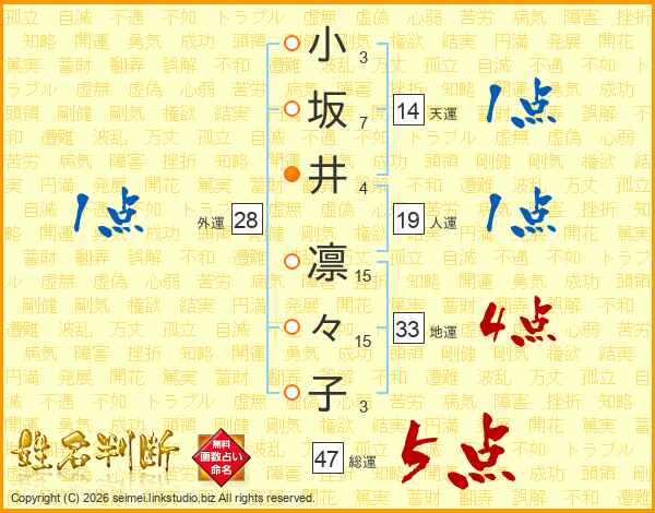 小坂井凛々子さんの総運は47画の5点!