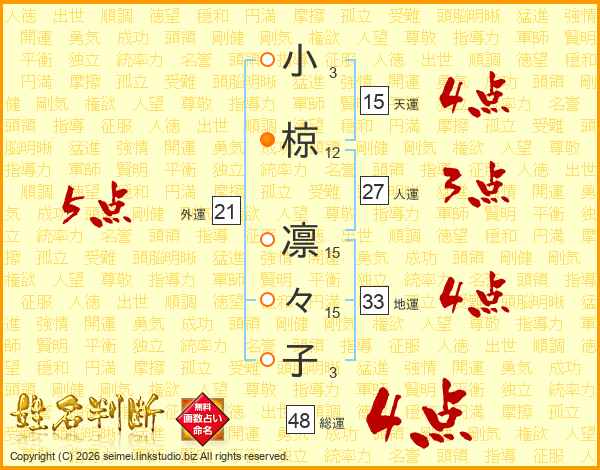 小椋凛々子さんの総運は48画の4点!