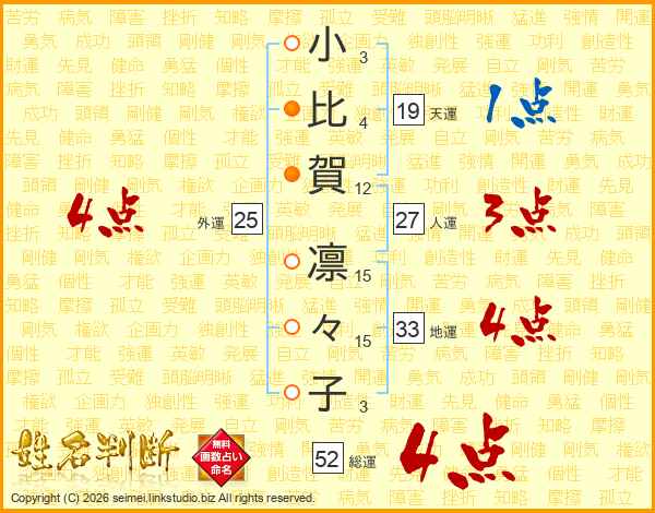 小比賀凛々子さんの総運は52画の4点!