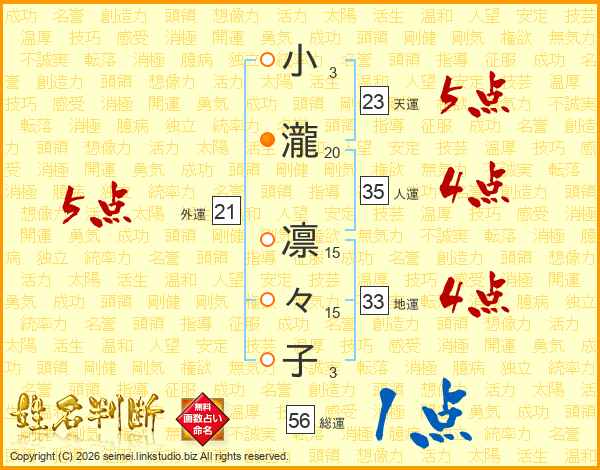 小(3画)瀧(20画) 凛(15画)々(15画)子(3画)