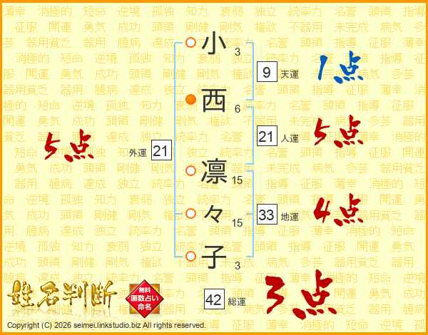 小西凛々子さんの外運は21画の5点!