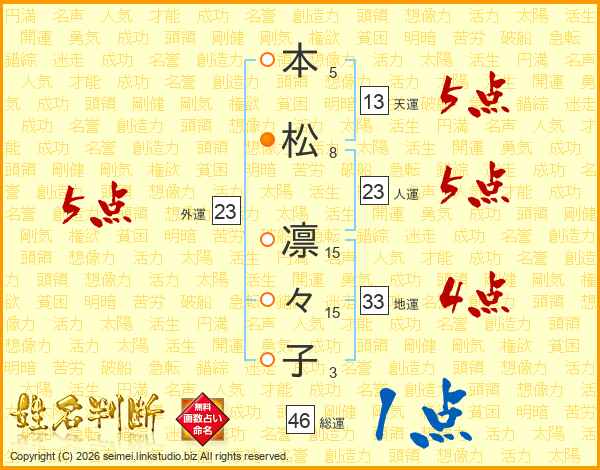 本松凛々子さんの外運は23画の5点!