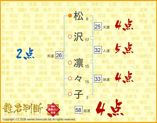 松沢凛々子さんの総運は58画の4点!