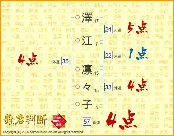 澤江凛々子さんの総運は57画の4点!