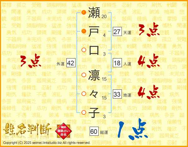 瀬戸口凛々子さんの総運は60画の1点!