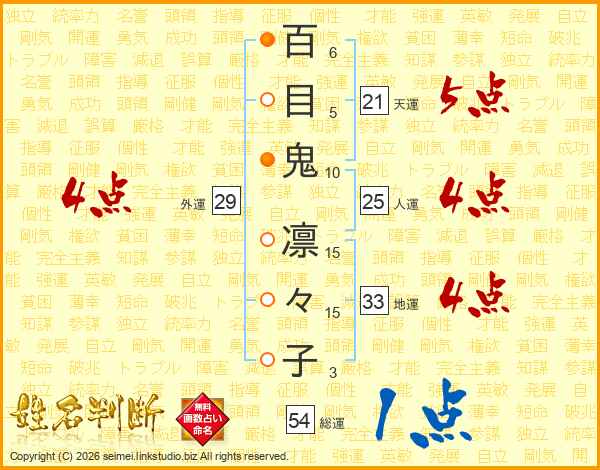 百目鬼凛々子さんの総運は54画の1点!