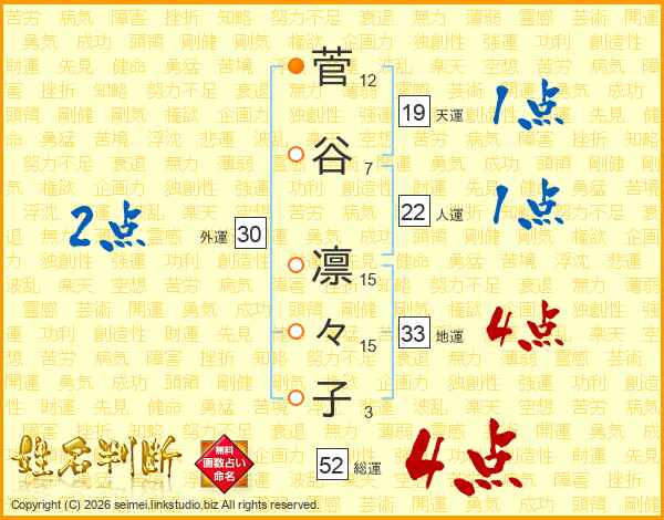 菅谷凛々子さんの総運は52画の4点!