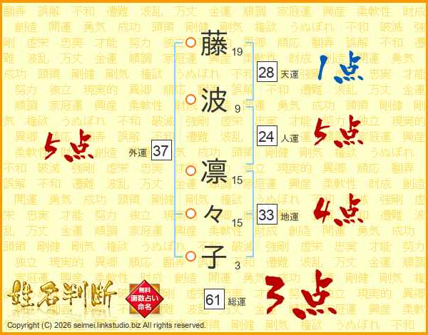 藤(19画)波(9画) 凛(15画)々(15画)子(3画)