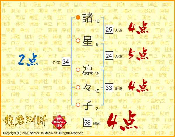 諸星凛々子さんの総運は58画の4点!