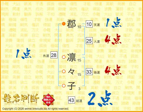 郡凛々子さんの総運は43画の2点!