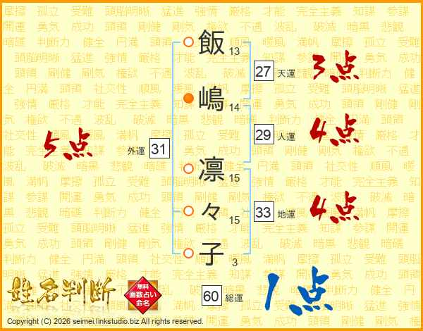 飯嶋凛々子さんの総運は60画の1点!