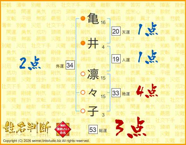 亀井凛々子さんの総運は53画の3点!