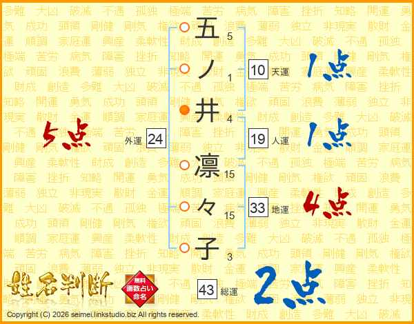 五ノ井凛々子さんの地運は33画の4点!