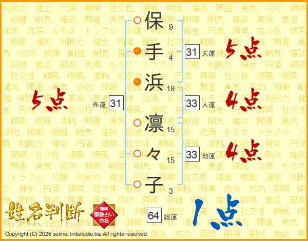 保手浜凛々子さんの総運は64画の1点!