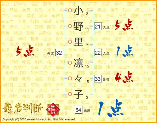 小野里凛々子さんの外運は32画の5点!