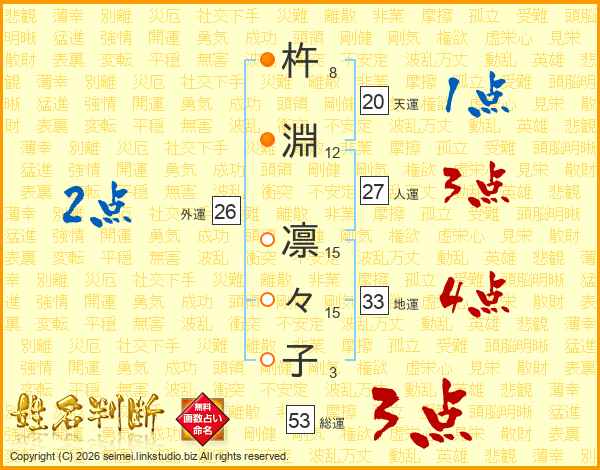 杵淵凛々子さんの外運は26画の2点!
