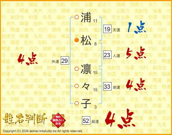 浦松凛々子さんの総運は52画の4点!