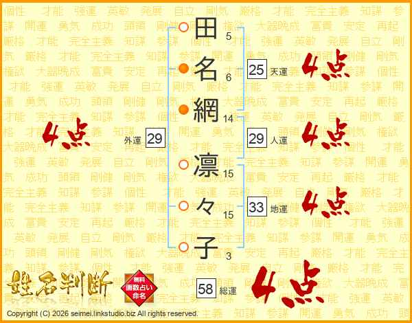 田名網凛々子さんの総運は58画の4点!