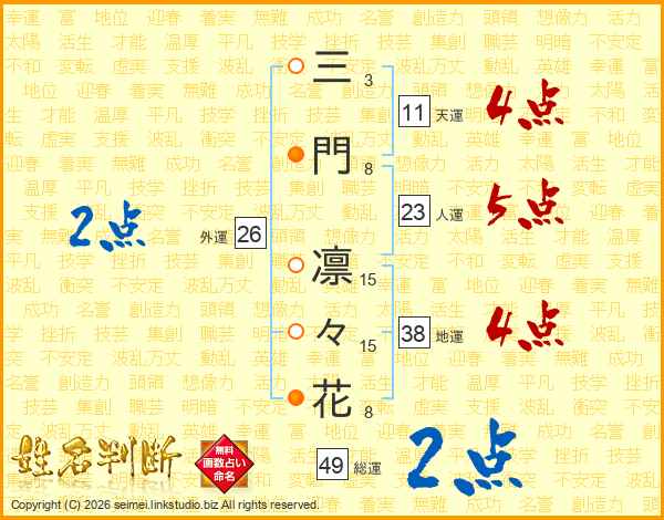 三(3画)門(8画) 凛(15画)々(15画)花(8画)