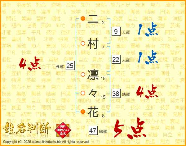 二村凛々花さんの総運は47画の5点!