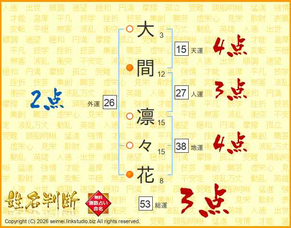 大間凛々花さんの外運は26画の2点!