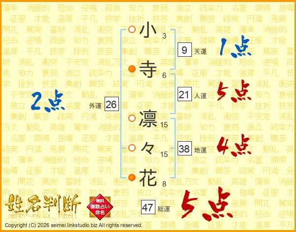 小(3画)寺(6画) 凛(15画)々(15画)花(8画)